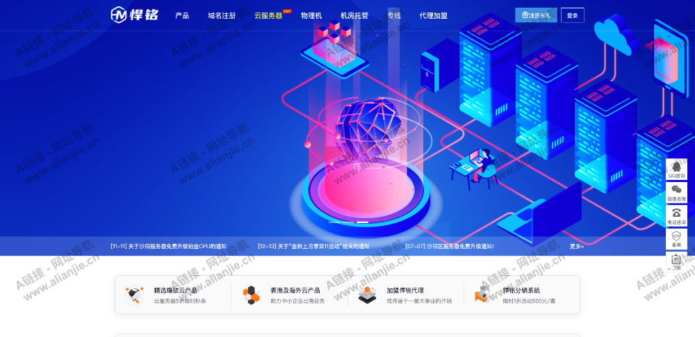 悍铭数据中心是成立于2003年老牌IDC运营商,提供虚拟主机、云服务器、IDC托管以及域名注册等业务。