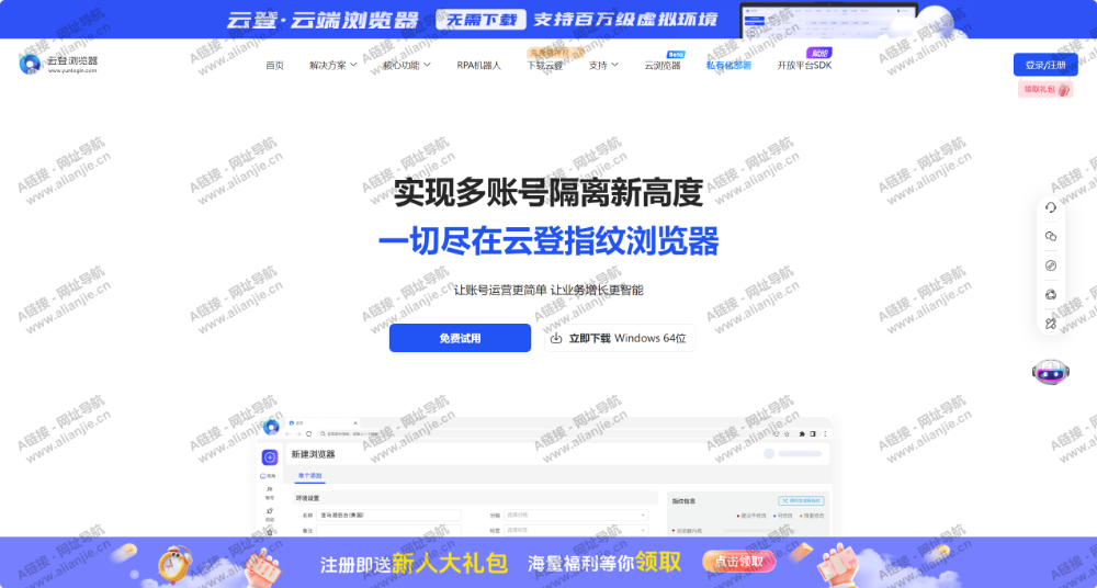 Yunlogin防关联免费指纹浏览器是一款为跨境多业务提供账号矩阵,店铺多开的电商浏览器,云登反指纹浏览器提供专业的浏览器指纹,实现一台电脑多开浏览器分身,RPA机器人等自动化操作功能,还可支持高效的团队协作实现全链路赋能广泛业务高速增长,一个让您省心、更省钱的超级浏览器。