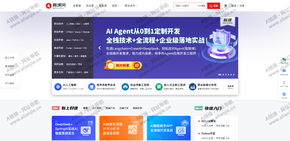 慕课网于2025-04-29收录在本站。收录时,此站可正常访问且未发现明显的违法违规信息,后期该网站若出现违法违规信息与本站无关。由于互联网域名的租赁属性以及公开信息的不确定性,若该网站后期不可访问或出现了违法信息,可联系本站,我们将第一时间屏蔽!