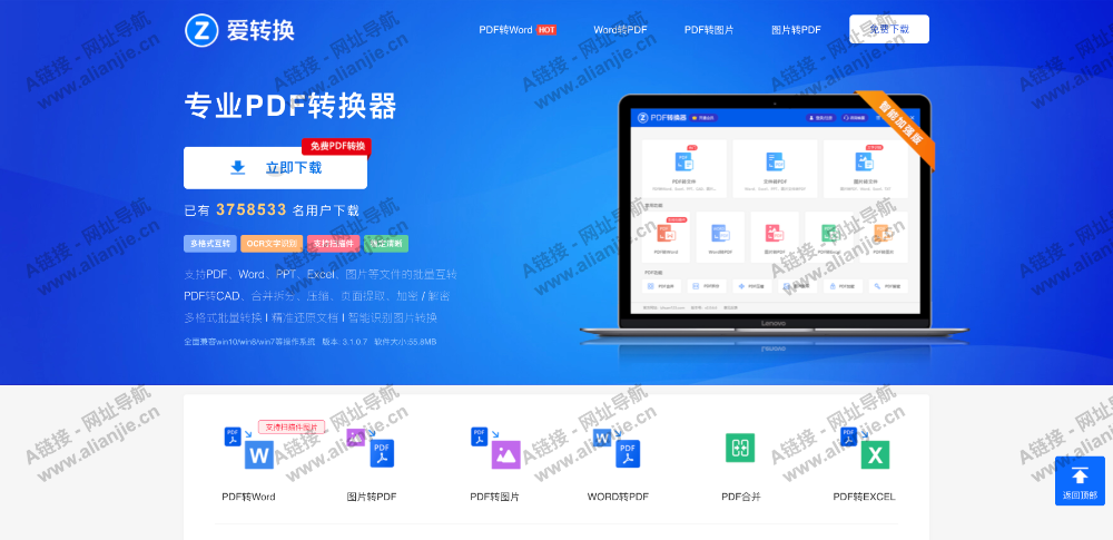 爱转换PDF转换器,专业的PDF转换工具,提供各类PDF转换功能,包括PDF转Word、Excel、PPT、图片、Html等,还能拆分、合并、压缩、加密、提取图片,Word、Excel、PPT转PDF等,功能强大,方便快捷,PDF转换软件选择爱转换。