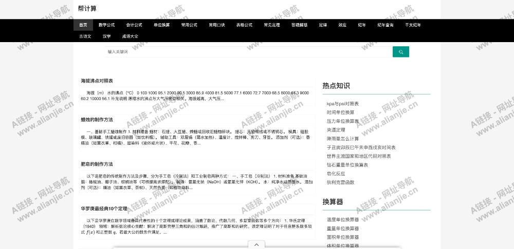 帮计算提供数学计算的公式,各种数量单位的换算表,还有定律、法则、效应等定律规律的总结大全。