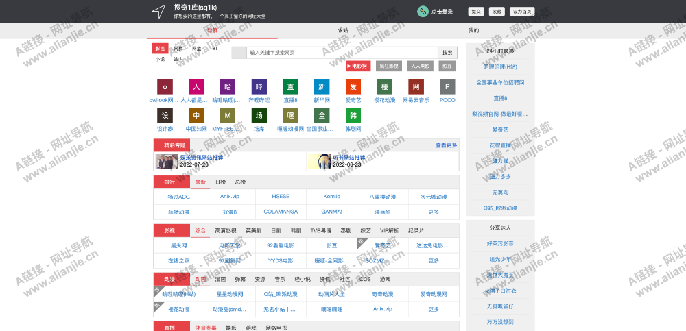 搜奇1库(sq1k,搜奇一库)是一个专业搜集各种网址的平台,在这里你能找到任何你所需要的网站,无论是免费电影、免费小说、泰剧韩剧日剧或者各种有意思的小网站,总能在这里有得到。还有一大群热心的网友和你一起玩转互联网,你能更随心所欲的畅游网络世界,享受更多网络世界的快乐。
