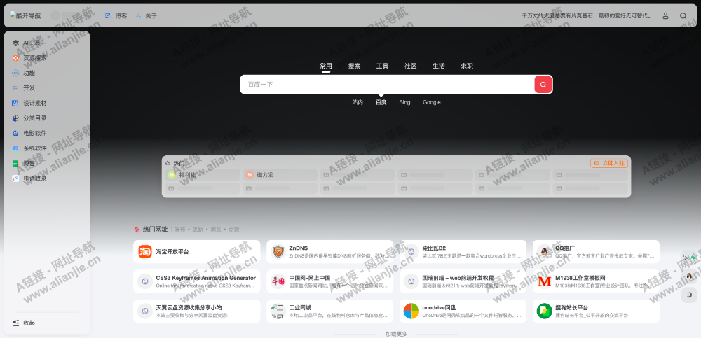 攸沐导航是一个为办公、设计、文案、影音、程序、营销、策划、推广等多种职业角色打造的专业分类网址导航工具,站点共收录500+优秀网站,根据实际应用体验设定专属标签,快捷搜索支持多平台一键跳转,可自定义收藏常用网址等实用功能,旨在帮助用户提高工作效率,直达信息前沿