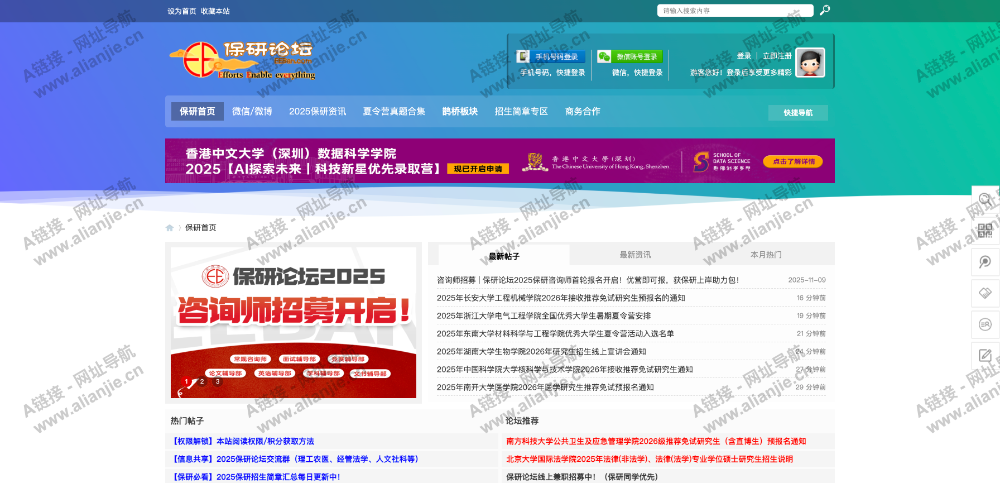 保研论坛于2025-09-24收录在本站。收录时,此站可正常访问且未发现明显的违法违规信息,后期该网站若出现违法违规信息与本站无关。由于互联网域名的租赁属性以及公开信息的不确定性,若该网站后期不可访问或出现了违法信息,可联系本站,我们将第一时间屏蔽!