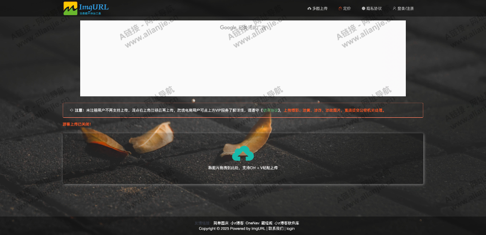 ImgURL免费图床于2025-09-27收录在本站。收录时,此站可正常访问且未发现明显的违法违规信息,后期该网站若出现违法违规信息与本站无关。由于互联网域名的租赁属性以及公开信息的不确定性,若该网站后期不可访问或出现了违法信息,可联系本站,我们将第一时间屏蔽!