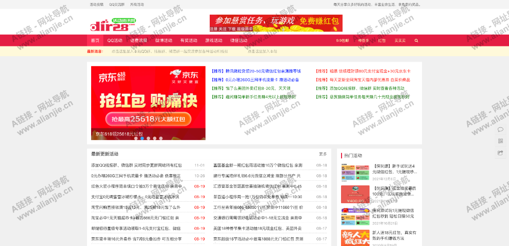 活动资讯网是专门发布各类有奖活动信息的网站,包括微信活动、红包活动、淘宝有奖活动、集分宝签到活动、腾讯qq活动、免费领取试用装、赚取话费,现金,网上免费资源、各种线报等信息。