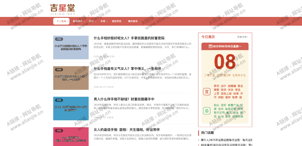 吉星堂是以传统民俗生肖知识、命理知识等玄学知识为主的网站,是生肖算命免费网站,更有包括生辰八字算命免费测试,以及给您2025运势及运程免费测试,供您作为参考。