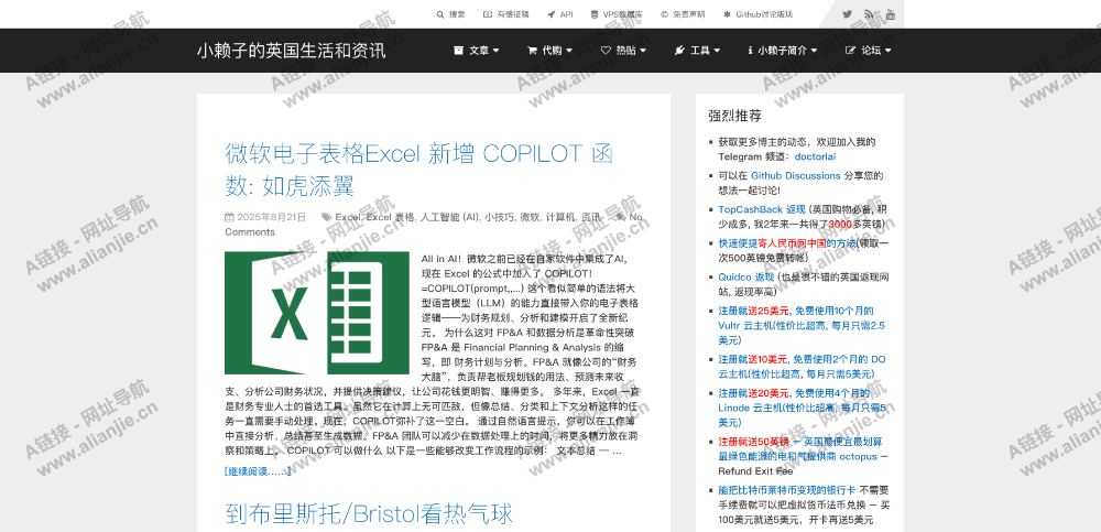 小赖子的英国生活和资讯于2025-10-12收录在本站。收录时,此站可正常访问且未发现明显的违法违规信息,后期该网站若出现违法违规信息与本站无关。由于互联网域名的租赁属性以及公开信息的不确定性,若该网站后期不可访问或出现了违法信息,可联系本站,我们将第一时间屏蔽!