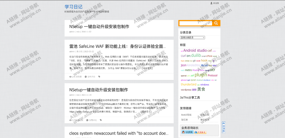 学习日记于2025-10-13收录在本站。收录时,此站可正常访问且未发现明显的违法违规信息,后期该网站若出现违法违规信息与本站无关。由于互联网域名的租赁属性以及公开信息的不确定性,若该网站后期不可访问或出现了违法信息,可联系本站,我们将第一时间屏蔽!