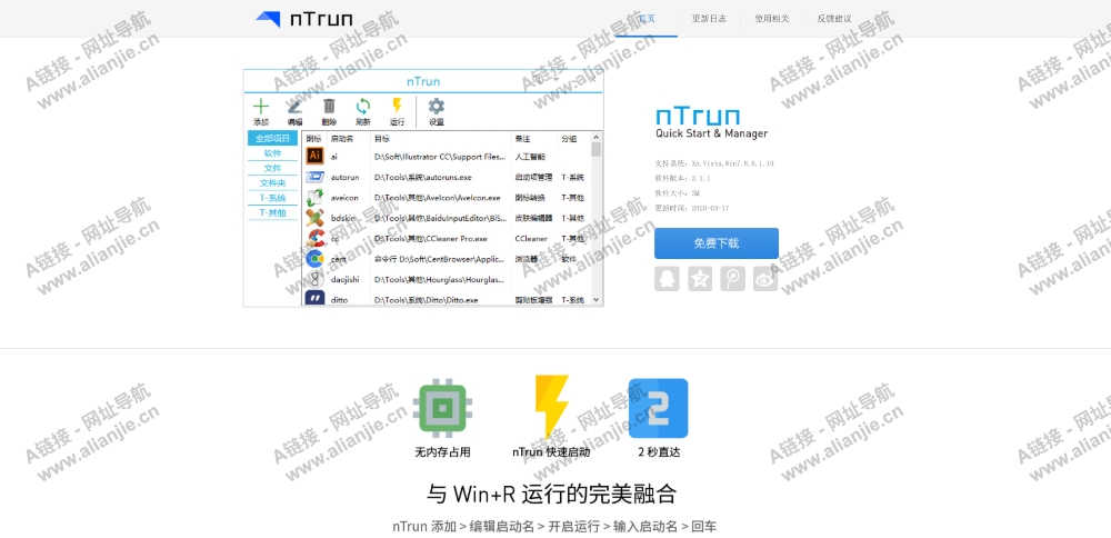 nTrun 快速启动与Win+R运行完美融合,无内存占用,2秒直达!更是优秀的本地程序管理工具,让你尽享应用的乐趣!