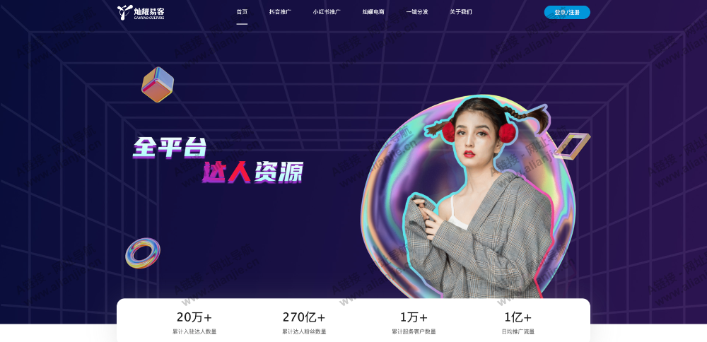 灿耀易客平台是湖南灿耀文化传播有限公司与荔枝娱乐文化传播有限公司研发的基于大数据技术的达人营销投放平台。为各行业广告主提供抖音、小红书、微博、快手、B站等平台自媒体广告投放服务,以直播业务起步发展迅猛,凭借丰富的平台资源,已成为腾讯、字节跳动、百度、阿里巴巴、华为等众多平台的合作伙伴! 拥有百人的内容运营/内容审核/经纪人团队及500+的商务团队,累计签约达人10万+。