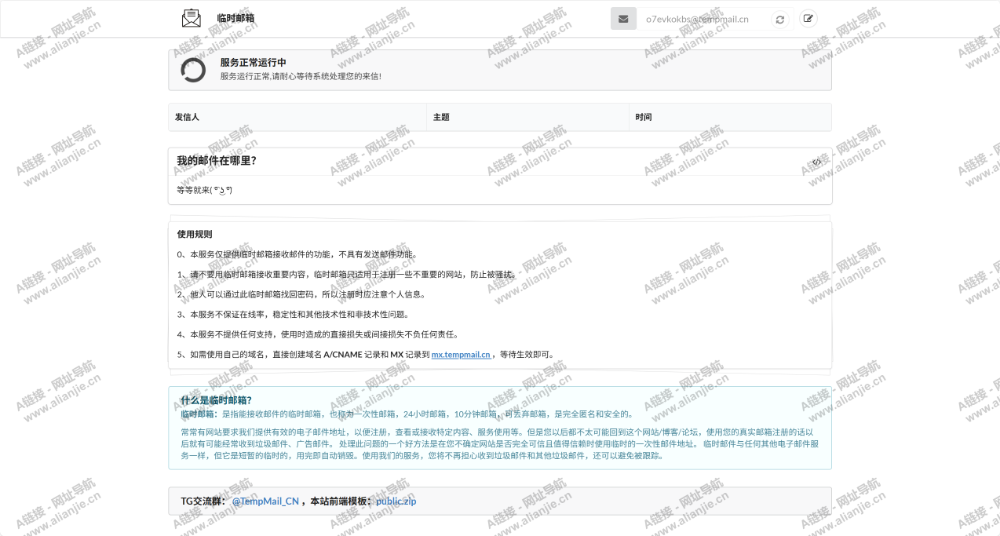 临时邮箱于2025-05-24收录在本站。收录时,此站可正常访问且未发现明显的违法违规信息,后期该网站若出现违法违规信息与本站无关。由于互联网域名的租赁属性以及公开信息的不确定性,若该网站后期不可访问或出现了违法信息,可联系本站,我们将第一时间屏蔽!