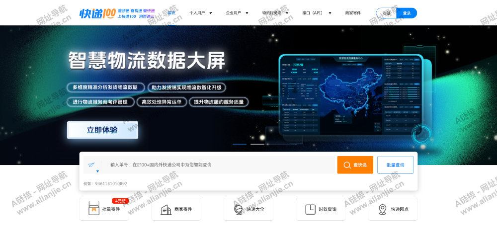 快递100-查快递,寄快递,管快递,上快递100,用百递云注册登录我的查件记录我的寄件订单用户中心退出首页个人用户产品介绍寄快递国际快递快递大全开放服务企业用户电商快递管家SaaSAPI开放平台企业快递管理SaaS物流服务商快递员收件端快递公司入驻接口(API)产品介绍接口申请技术文档商家寄件寄快递,免费预约上门取件立即寄件快递100公众号快递100APP微信扫一扫最近十条查询记录,需要永久保存?