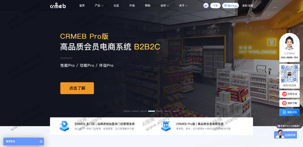 CRMEB开源商城系统,围绕新零售、品牌连锁、商家入驻等多种商业模式,自主研发B2C商城系统、B2B2C多商户商城系统、连锁多门店商城系统、跨境电商系统等;应用于直播电商、社交新零售、商家入驻等多种应用场景,系统支持多语言、多端登录,代码开源、独立部署、永久免费升级。咨询:400-8888-794