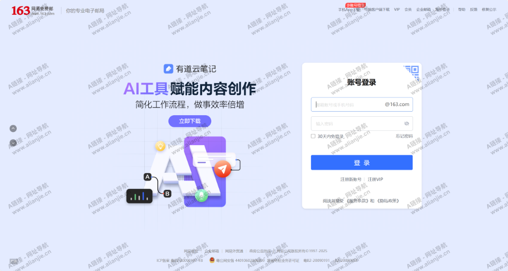 网易163免费邮箱,你的专业电子邮局,注册用户数超10亿,专业稳定安全。网易邮箱官方App“邮箱大师”帮您高效处理邮件,支持所有邮箱,并可在手机、Windows和Mac上多端协同使用。